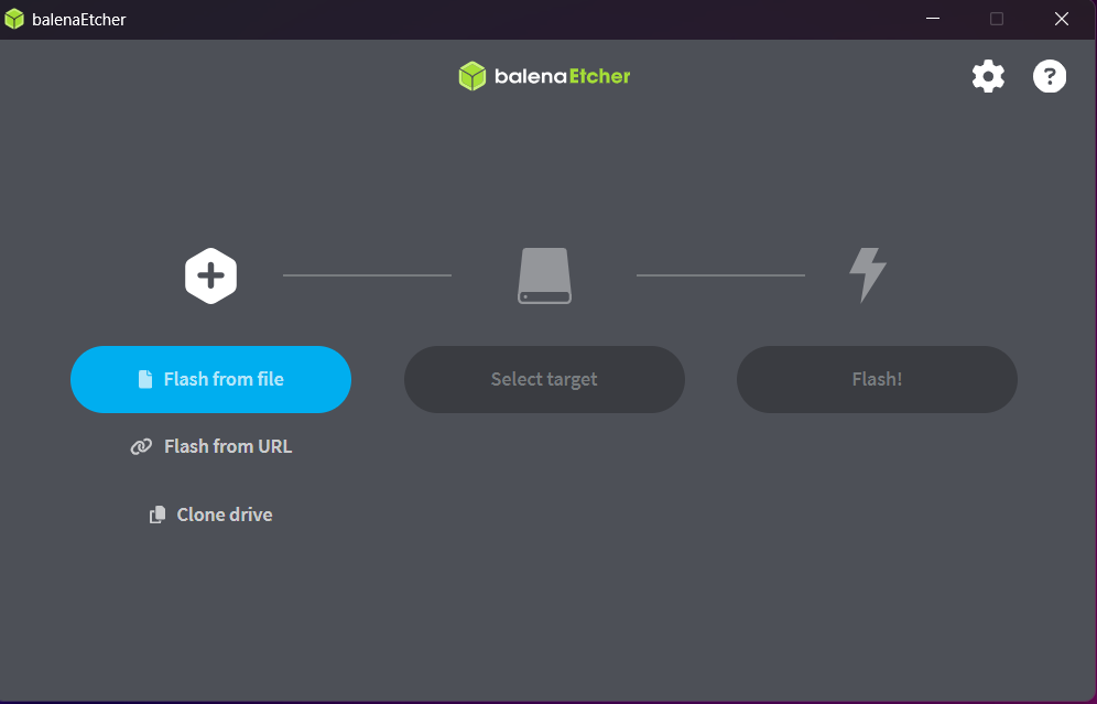 - Trên giao diện chính của Etcher, chọn "Flash from file" (hoặc "Select image").