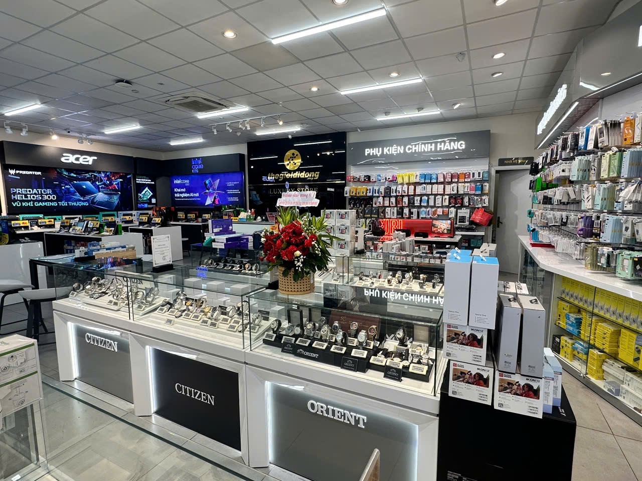 Thế Giới Di Động đã đầu tư vào việc cải thiện trải nghiệm mua sắm của khách hàng. Khu vực trưng bày đồng hồ Nhật Bản được bố trí ở vị trí trung tâm, dễ dàng tiếp cận tại các siêu thị. Bạn có thể dễ dàng nhận biết các mẫu đồng hồ bán chạy nhất của Citizen, Orient và Casio thông qua các nhãn dán "Top bán chạy".